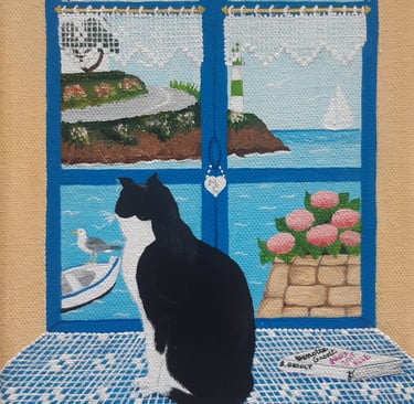 Toutes mes oeuvres sont des huiles sur toile, vous les trouverez classées par thème : chats, paysages de neige, bretagne, divers etc...