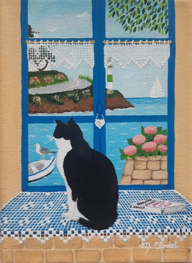N° 395 Le chat et la mouette - 16x22 - 2025 - 250 €
